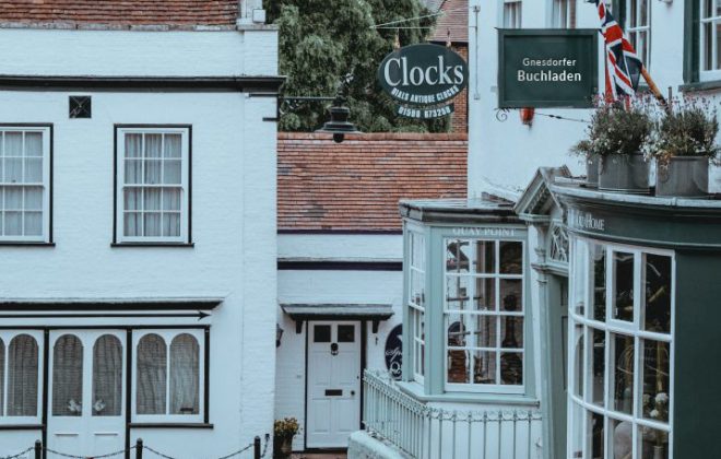 An der Ostseite schließlich findet man ein Café und weitere Geschäfte. Die Häuser wirken hier mit bis zu drei Etagen schon eher städtisch. Mein eigenes Geschäft liegt links des Kreisverkehrs, gleich an das Rathaus anschließend. Danach folgen Schule und Kindergarten. In der anderen Richtung erreicht man einen Supermarkt und weiter draußen einen Autohändler.
